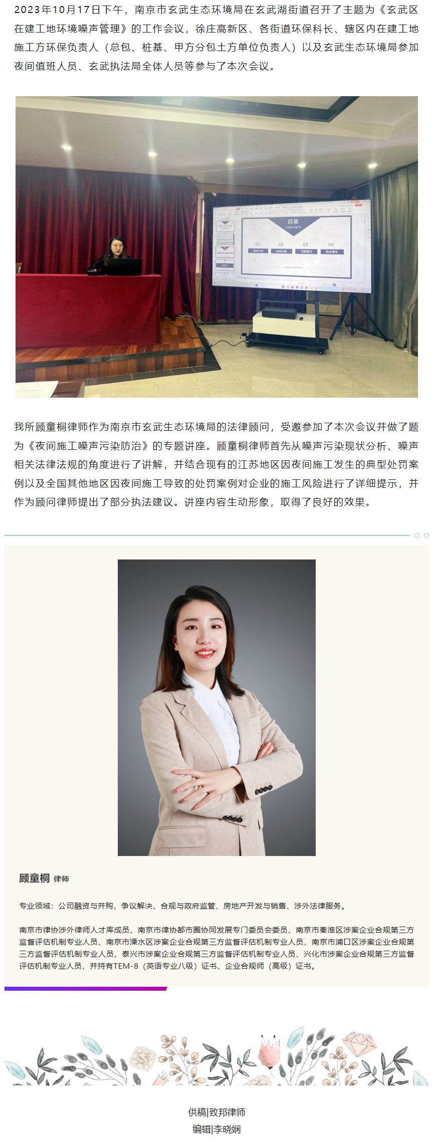 致邦动态|致邦顾童桐律师应邀参加南京市玄武生态环境局工作会议并做专题讲座