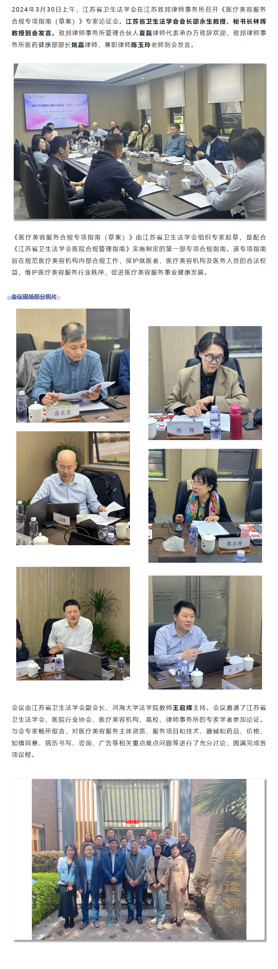 致邦动态|江苏省卫生法学会《医疗美容服务合规专项指南(草案)》专家论证会在致邦顺利召开