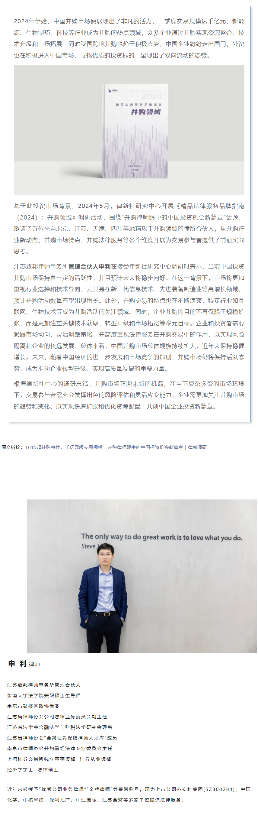 致邦动态|“并购律师眼中的中国投资机会新篇章”——申利律师接受律新社研究中心采访