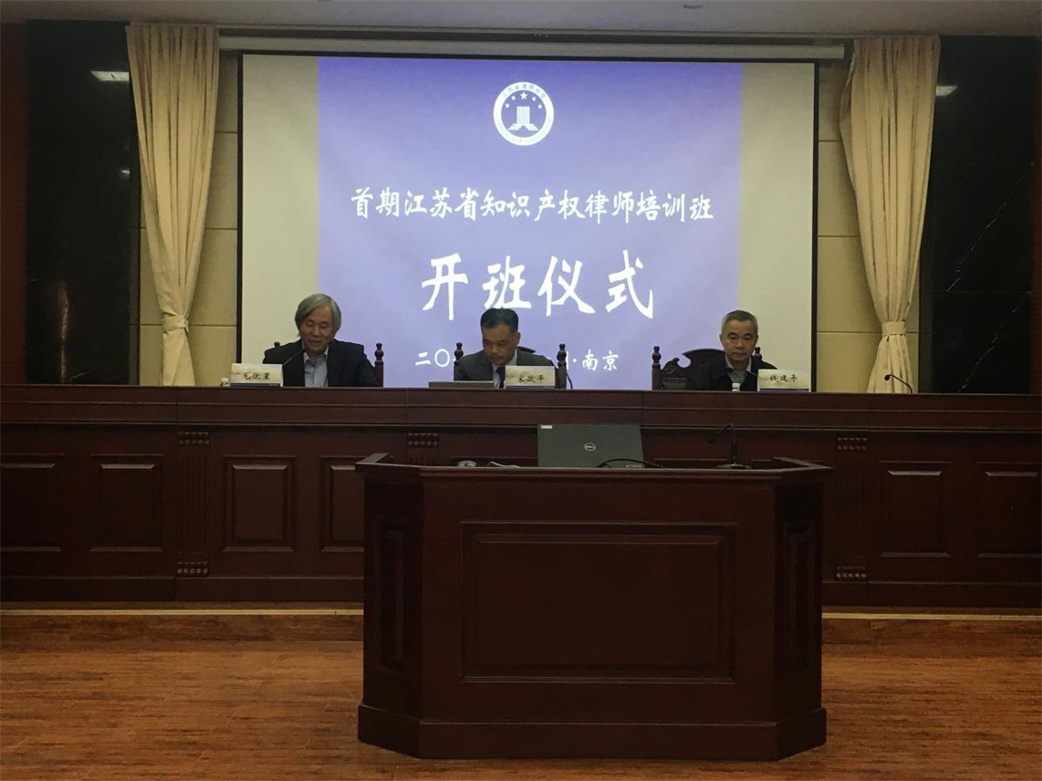 2017年11月12日上午10点,由江苏省律师协会主办、江苏省律师协会知识产权业务委员会和南京理工大学知识产权学院共同承办的首期江苏省知识产权律师培训班开班仪式在南京理工大学知识产权创新实践教育中心模拟法庭举行。江苏省律师协会宋政平副会长、南京理工大学知识产权学院钱建平常务副院长、江苏省律师协会知识产权业务委员会毛依星主任出席本次开班仪式。